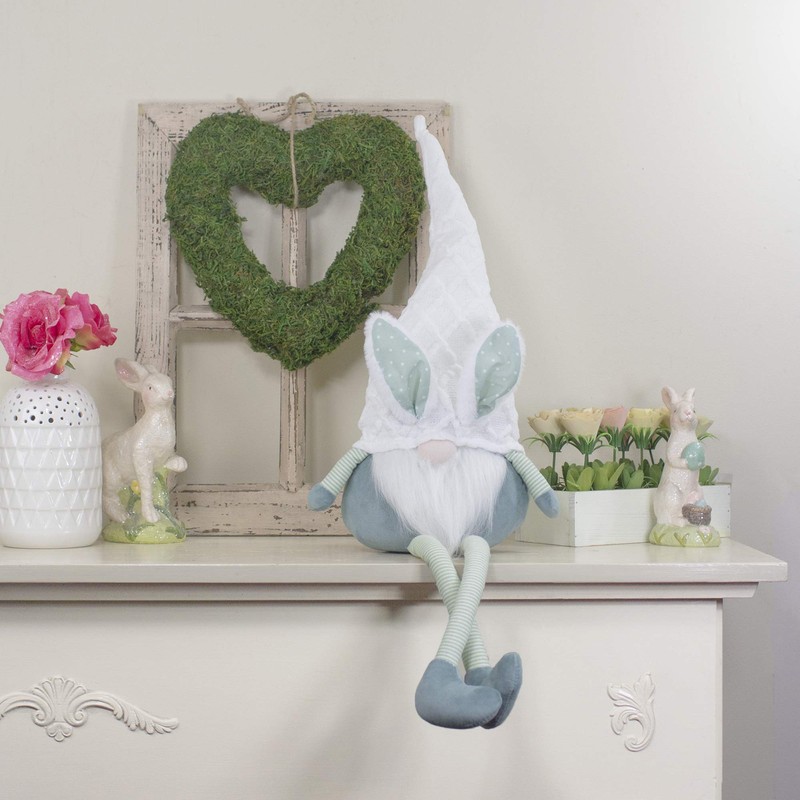 Northlight Sitting Easter Gnome with Polka Dot Bunny Ears and Dangling Legs - 33" - Teal Green