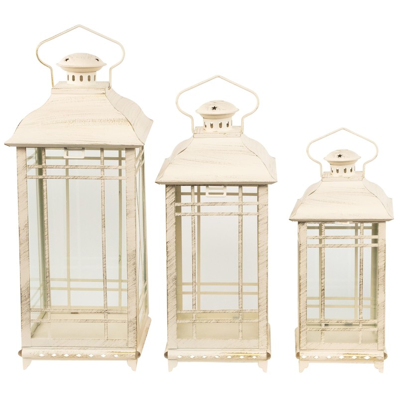 - Set Of 3 Lanterns In Cream With Brushed Gold Accents; Mission Style Design