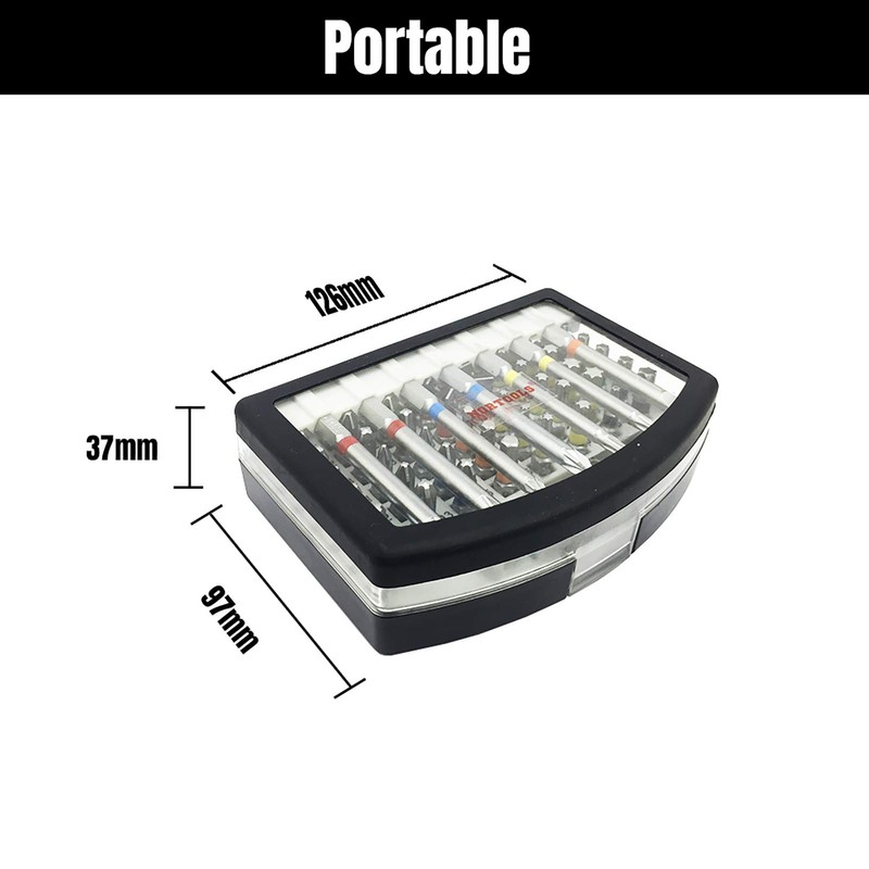 - SPECIFICATION- 48pcs 25mm S2 screwdriver bits, chrome plated with colour ring: PH1/1/1/2/2/2/3/3/3, PZ1/1/1/2/2/2/3/3/3, SL 4/4/5/5/6/6, HEX 3/4/5, TORX 10/10/15/15/20/20/25/25/27/27/30/30/40/40, Security TORX 10/15/20/25/27/30/40; 7pcs 75mm S2 screwdriver bits, chrome plated with colour ring: PH2/3, PZ1/2, TORX 20/25, SLOT 6. 1 pc 65mm quick change holder
