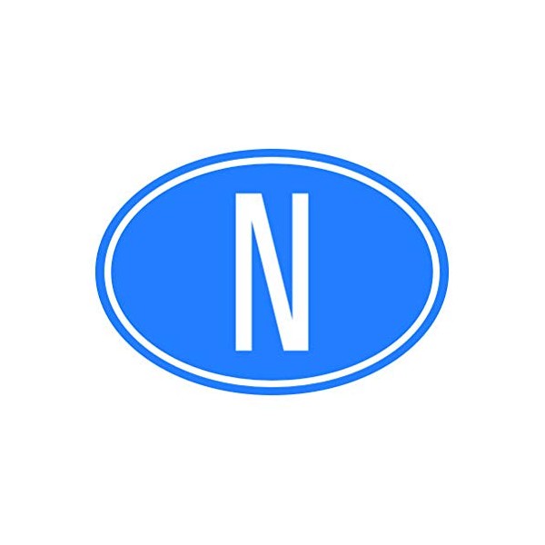 Norway Oval Sticker - Decal - Die Cut - Country Code N - Blue 1.50" x 1.05"