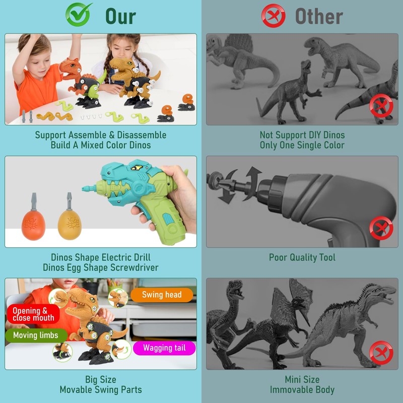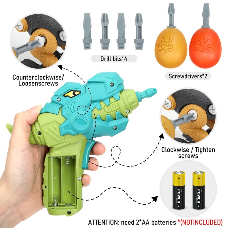 - EASY TO ASSEMBLE KIDS TOYS: Our toys set packing contains 1 Low-Speed Safe electric drill(coming with a screwdriver to be opened) with 2 different drill bits, 2 hand-screwdrivers with 4 kinds of drill bits, and assemble manuals for each dinosaur. Each steps are explained clearly in manuals, easy for kids to understand