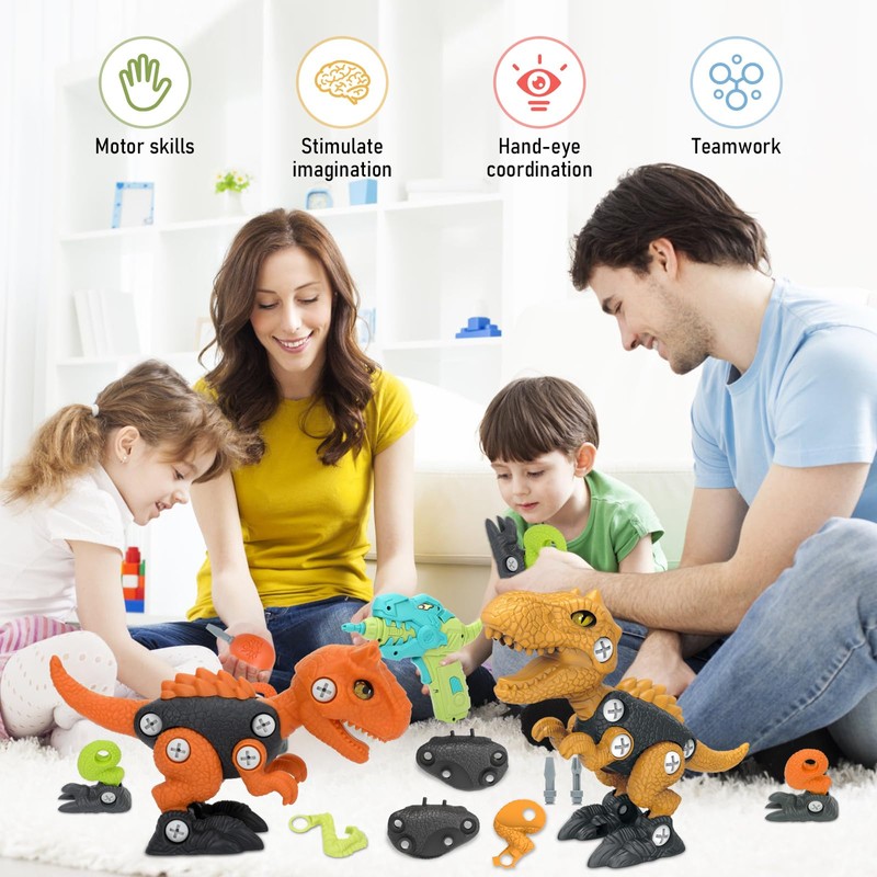 - DINOSAUR TOYS 3-Pack: Each set include 3 take apart dinosaurs: yellow Tyrannosaurus Rex, orange Carnotaurus, and green Velociraptor, which can be easily assembled and disassembled, providing hours of engaging play. Kids will develop problem-solving skills, teamwork skills and creativity