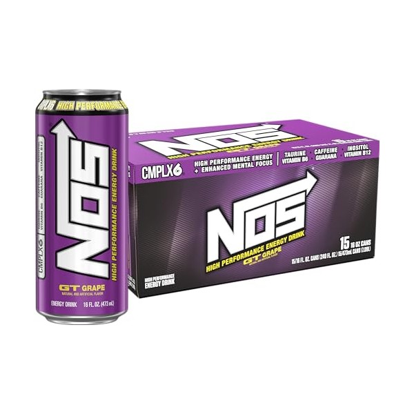 NOS GT Grape: High Performance Energy Drink. 16 Fl oz (Pack of 15)