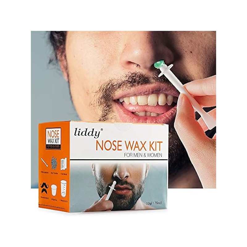 Nose and Ear Hair Removal Kit for Men and Women - 50g Wax, 20 Applicators, 8 Mustache Stickers, 10 Little Cups for Eyebrow Waxing, Safe and Quick