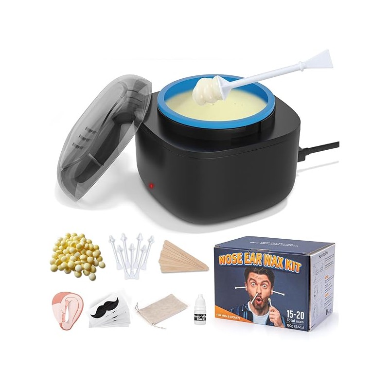 Nose Wax Kit Men, Nose and Ear Hair Waxing Kit with 100g Wax, 40 Applicators, Ear Hair Removal Kit, 20 Uses, USB Fast Heat, Smart Constant Temp, Upgraded Size, Multi-Accessories, Blue