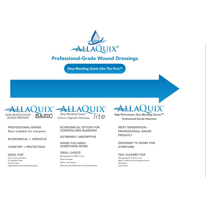 - WHAT IS THE DIFFERENCE BETWEEN ALLAQUIX HIGH PERFORMANCE AND ALLAQUIX LITE? High Performance is made of medical-grade chitosan. Chitosan has been used and proven by Medical Professionals and US Military for 20+ years to stop bleeding fast. High Performance has been reviewed and cleared by FDA for OTC (over-the-counter) use in the management of minor cuts, minor scalds and first-degree burns, abrasions, and lacerations. Lite is an economical starting point when you need something more than gauze.
