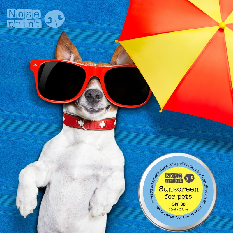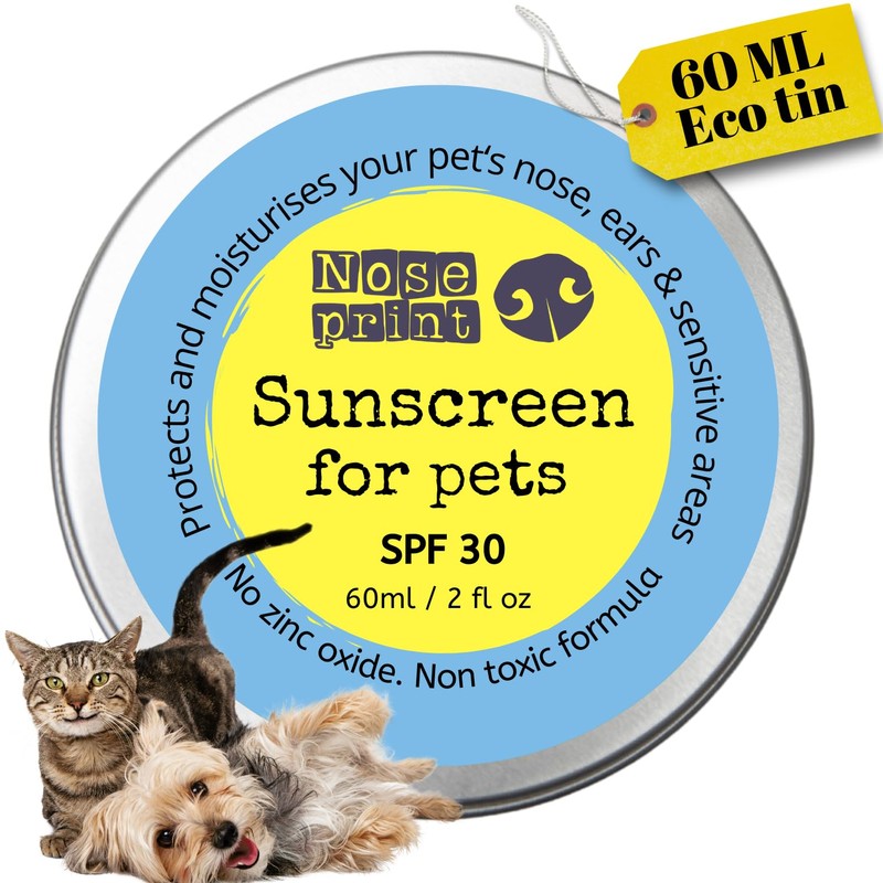 - Noseprint pets sun protection Made in Uk, eco packaging. Supporting local business by using their services to make this sun screen. Active ingredient Titianium dioxide. Other ingredients: Shea butter, Coconut butter, hemp oil, bees wax.