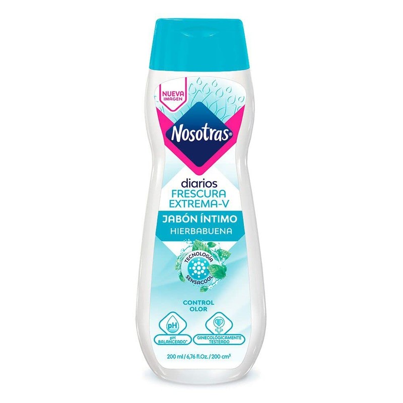 Nosotras Diarios - Saba (jabón íntimo) Delicado Frescura Femenina Limpiador Equilibrado PH Jabon Intimo Mujer de Uso Diario Prevenir Flujo y Malos Olores - Hierbabuena- 200 mlF