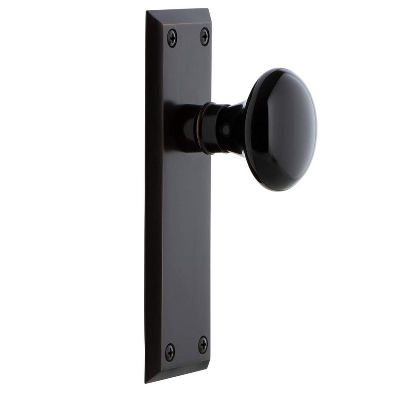 Nostalgic Warehouse New York Plate & Interior Black Porcelain Round Door Knob