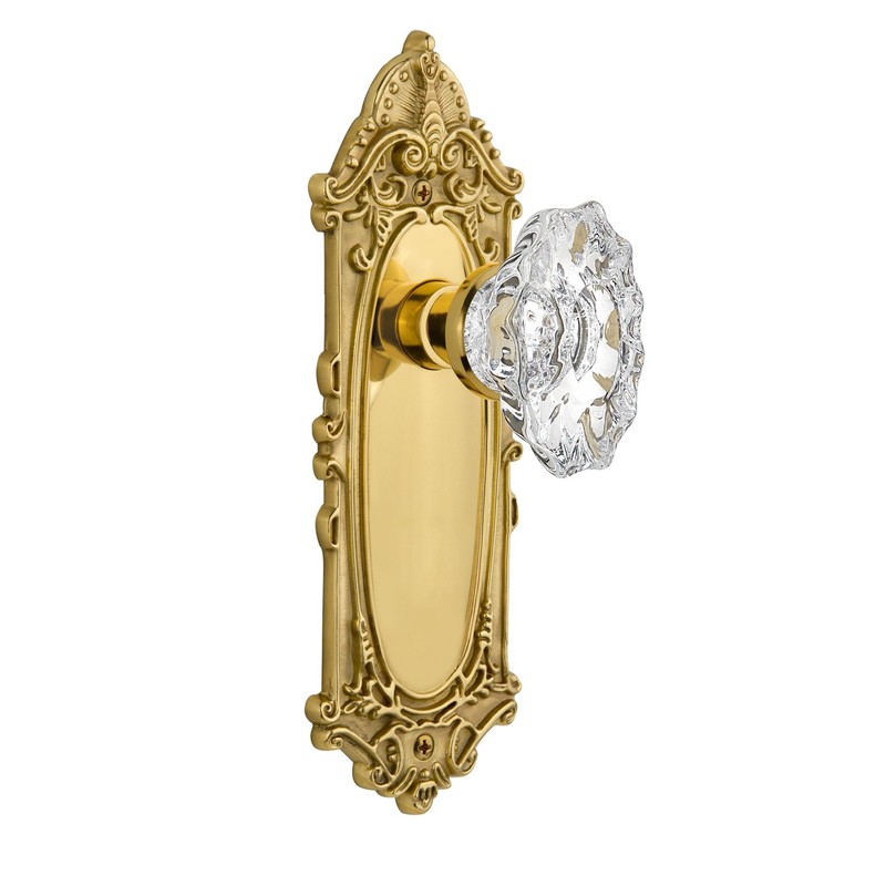 Nostalgic Warehouse Victorian Plate with Chateau Knob, Single Dummy, Polished Brass