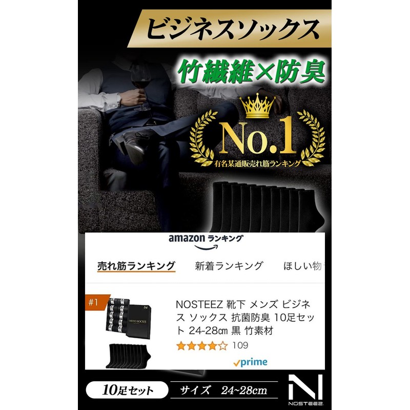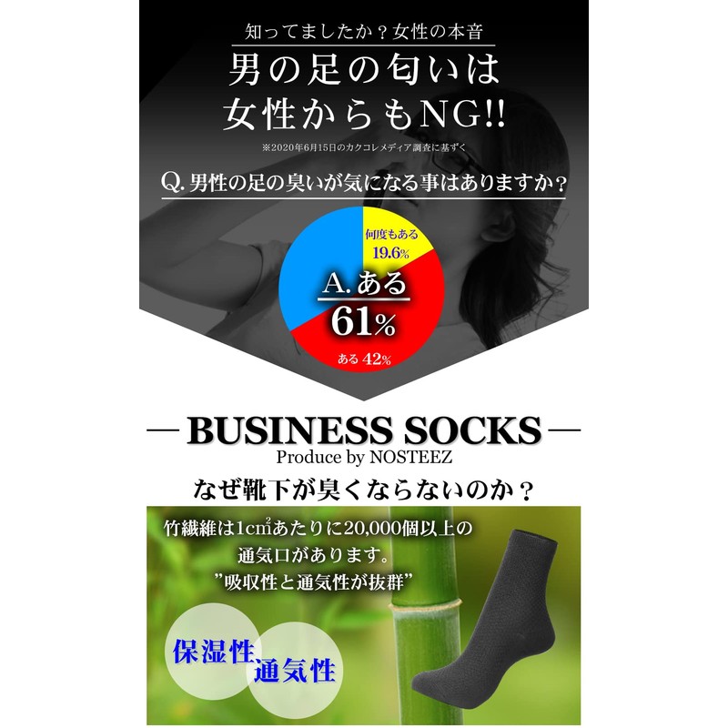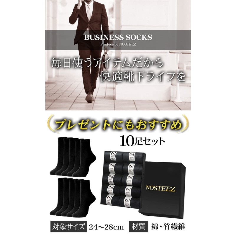 NOSTEEZ Men's Business Socks, Bamboo Material, Antibacterial, Odor Resistant, 10 Pair Set, 9.4 - 11.0 inches (24 - 28 cm), Black, Black