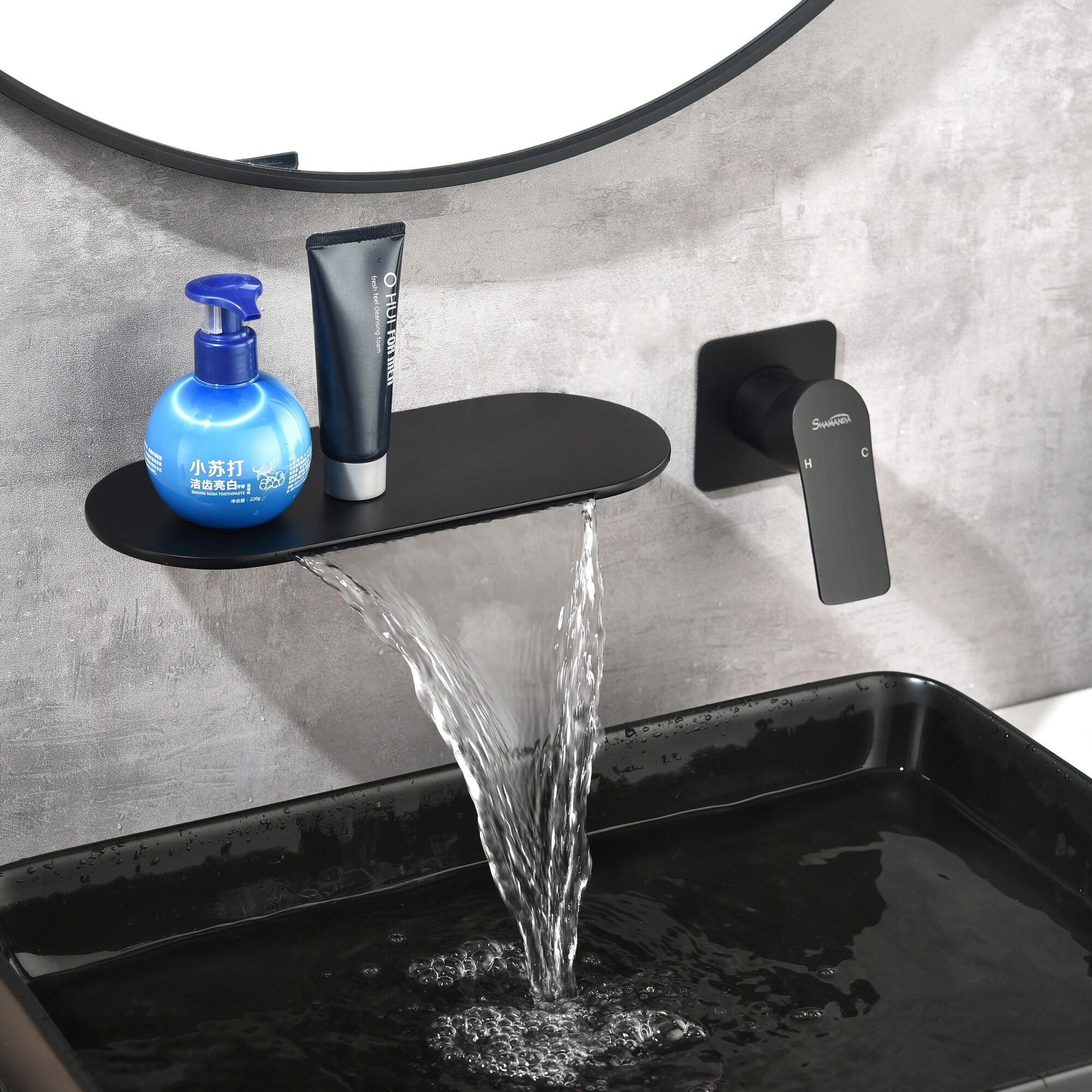 Not Available Waterfall Bathroom Sink Faucet 1- Handle Wall Mount Lavatory Matte Black