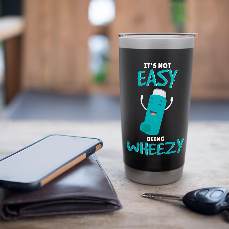 Not Easy Being Wheezy Inhaler Allergy Asthma Awareness Stainless Steel Insulated Tumbler