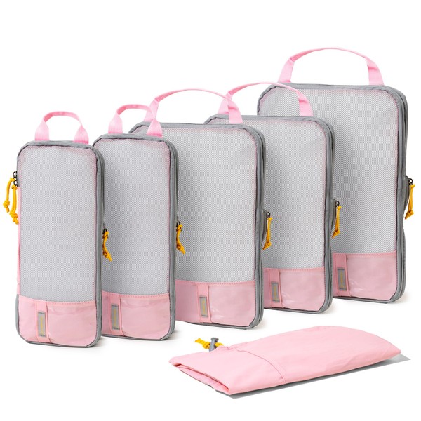 (Not Made In China) Compression Packing Cubes For Travel, Suitcase Organizer, Cruise Ship Essentials (6pc, Baby Pink)