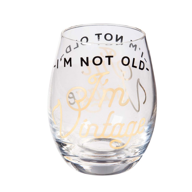 - Unique: This stunning glass reads "I'm not old I'm vintage", a great addition to your home.