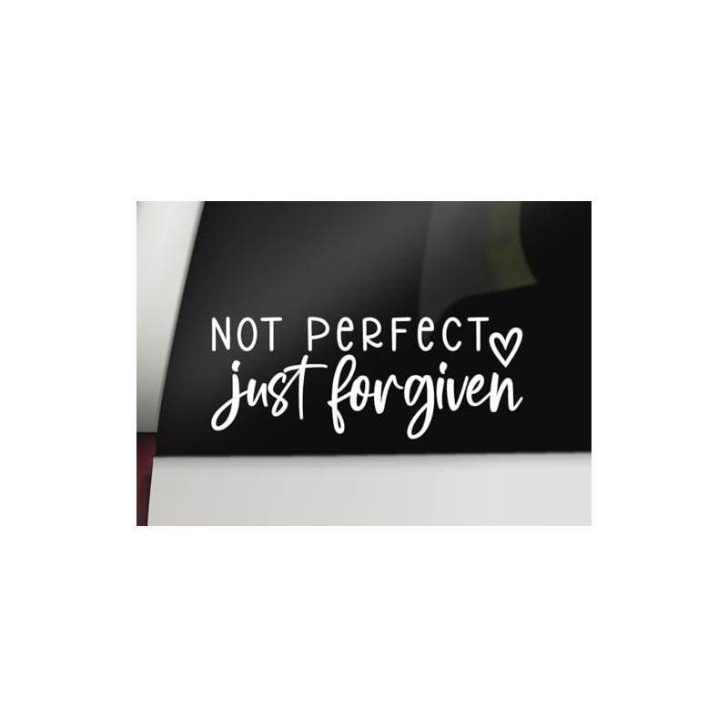 Not Perfect Just Forgiven Decal | Christian Decal | Religious Vinyl Sticker | Car Decal Bumper Sticker Window Laptop Tumbler Decal | 7.5" x 3" Size White | Made in USA | DECALBUNNY