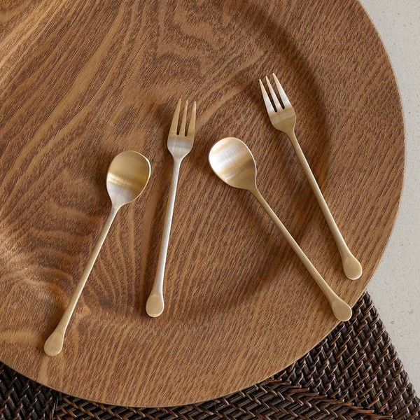 Notdam organic round teaspoon tea fork 4P set + department store gift packaging / 놋담 유기 둥근 티스푼 티포크 4P세트+백화점 선물포장