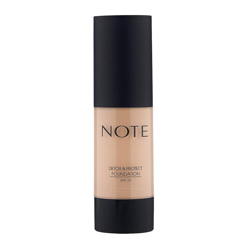 Note Detox & Protect Foundation offers medium to full coverage. It includes Sweet Almond Oil, Yeast extract, Vitamin E and SPF 15, which all work together to protect the skin from everyday environmental factors. This pump foundation is suitable for all skin types and is available in 11 shades.