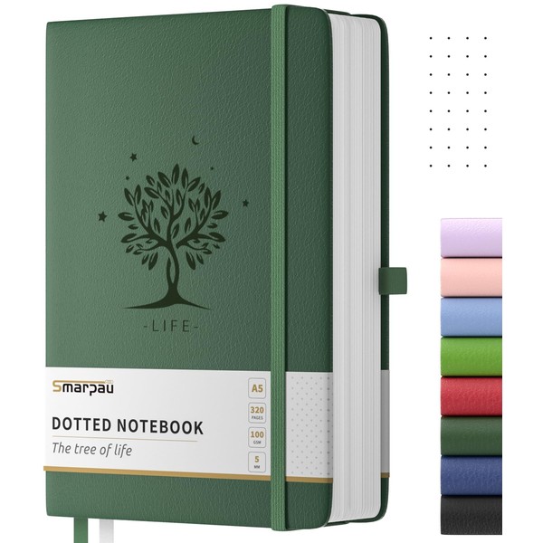 Notebook A5, Dotted Journal, 320 Pages Hardcover Notebooks, 100gsm Paper Leather Journal for Adults, Work, Writing, Notes, Learning, Travel, 14.5 x 21 cm, Dark Green