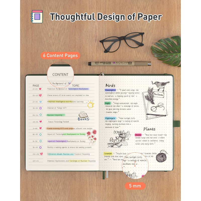 - [100gsm High Grammage Paper] The notebook is made of 100gsm high grammage paper, 20% thicker than normal paper. Smooth paper for smooth writing, no ink bleeding, suitable for most fountain pens. 180° easy to lay flat for comfortable reading and writing