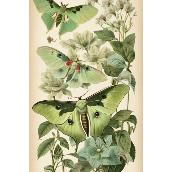 Notebook: Luna Moth Butterfly Vintage Botanical