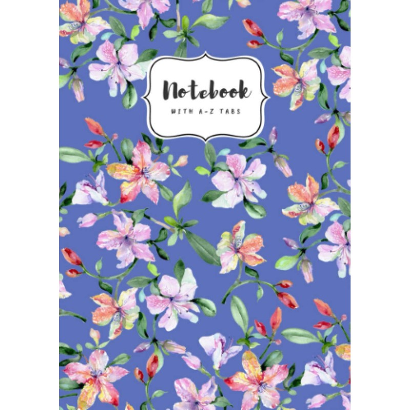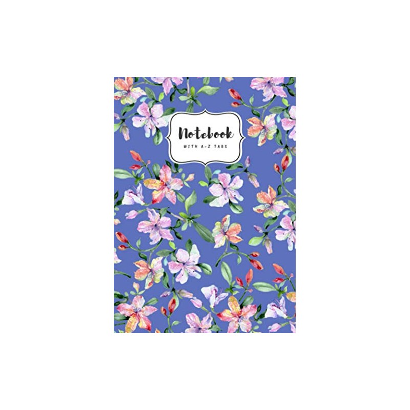Notebook with A-Z Tabs: B6 Small Lined Journal | Alphabetical Indexes | Watercolor Alstroemeria Flowers Design Blue