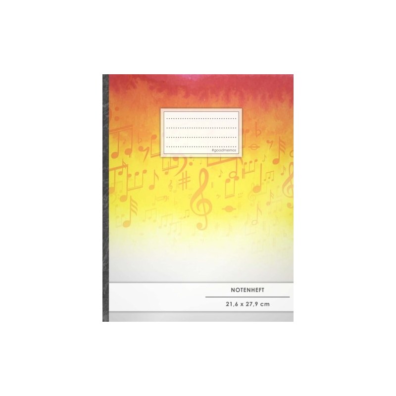 NOTENHEFT DIN A4 • 48 Seiten, 24 Blatt, 12 Systeme, „Rot-Gelb“ • Original #GoodMemos Schulheft • Mit Register und Seitenzahlen, Notenlineatur 14