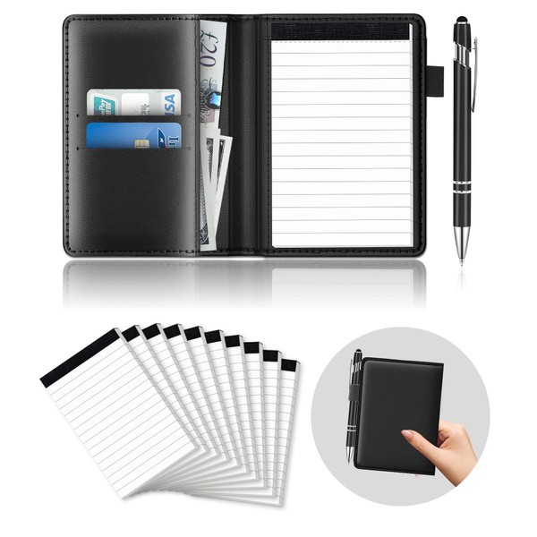 - Valuable package: set of 12 small leather notepad holders, A7 small notepads mini with 30 lined sheets, refillable paper. Also includes a metal pen and 10 replacement pads for A7 tear-off notepad with 30 lined sheets per pad. They are lined pages, can write conveniently, good for business, conference, meeting, office and travel, it is a choice for business people. A high-quality, versatile pocket notepads that will meet many of your needs.