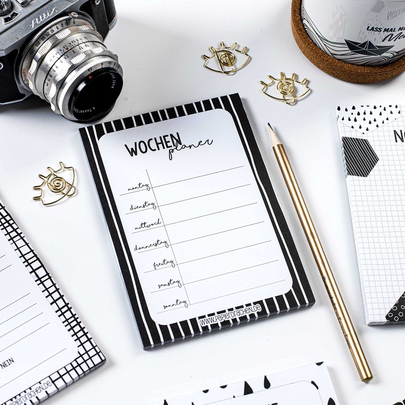 - Papierdrachen 6 notepads for appointments, weekly planner, to do list, shopping lists and more - daily planner and weekly planner black and white - ideal for school, university and household - notepad - DIN A6