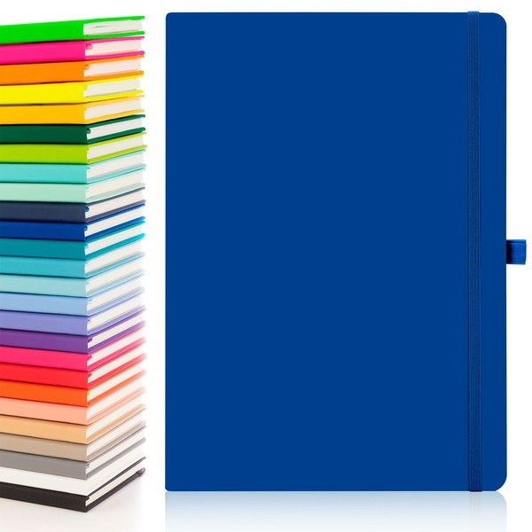 Notes London Eco A4 Notebook with Lined Pages, Pen Loop, Ribbon, Date Marks and Paper Pocket, Pocket Hardback Journal, Note, sustainably sourced paper (Blue)