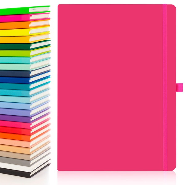 Notes London Eco A4 Notebook with Lined Pages, Pen Loop, Ribbon, Date Marks and Paper Pocket, Pocket Hardback Journal, Note, sustainably sourced paper (Pink)