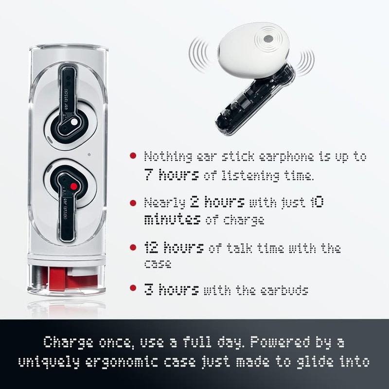 Nothing Ear Stick, Fully Wireless Earphones, Bluetooth 5.2, Half-in Ear Design, Appearance, Special Acoustic Structure Design, Up to 29 Hours Playtime / Bass Lock Function, IP54