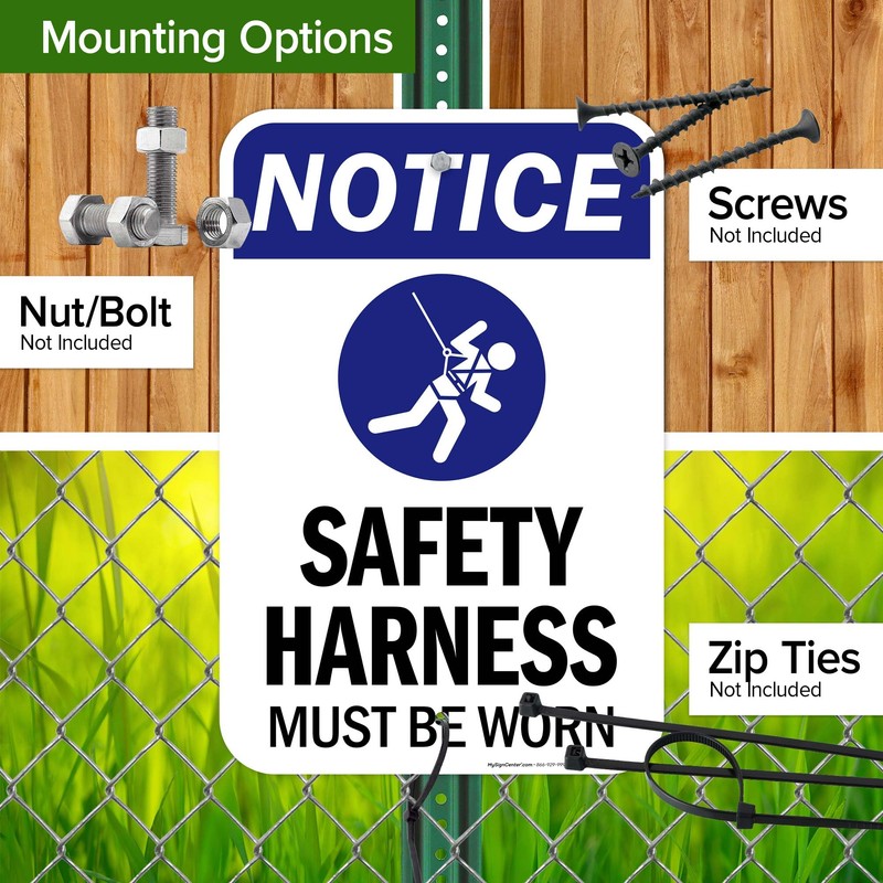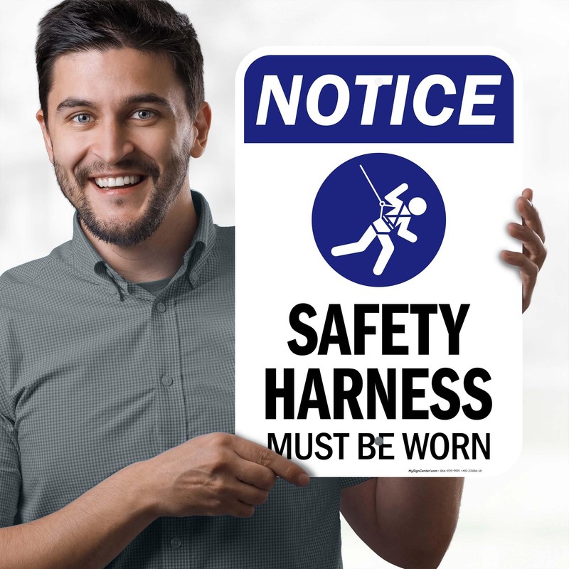 Notice Safety Harness Must Be Worn Sign, 12x18 Inches, Rust Free .063 Aluminum, Fade Resistant, Made in USA by My Sign Center
