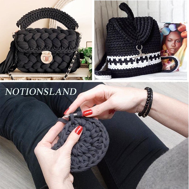 NOTIONSLAND 400g T Shirt Yarn Knitting Yarn Fabric Crochet Yarn for Bag Basket Blanket Home Decor Black Plain Yarns