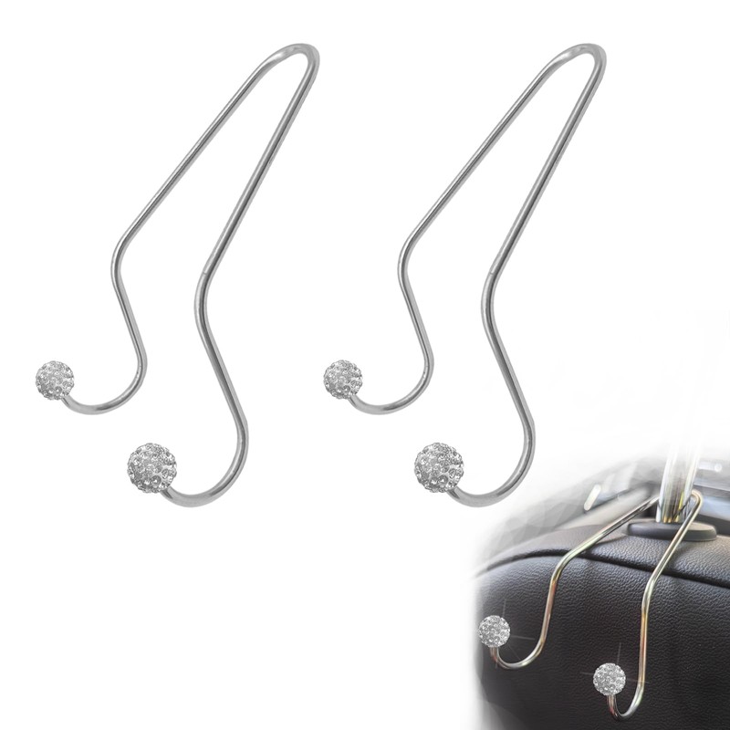 NOTISH 2 Pack Bling Car Headrest Seat Hooks, Upgraded Strong and Durable Metal Car Bag Hooks Use for Purses Clothes Grocery Bags, for Men Women Girls