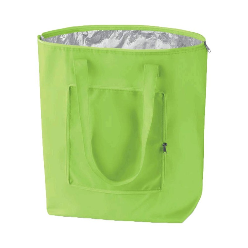 - Cooling function: the shopping bag has an integrated cooling function that allows it to keep food fresh. It is equipped with an insulated inner lining that maintains cooling and protects the contents from external heat sources. Perfect for transporting fresh foods such as meat, dairy, fruits and vegetables. Practical foldable cooler bag made of easy-care and robust 210T polyester with aluminium foil for food cooling inside.