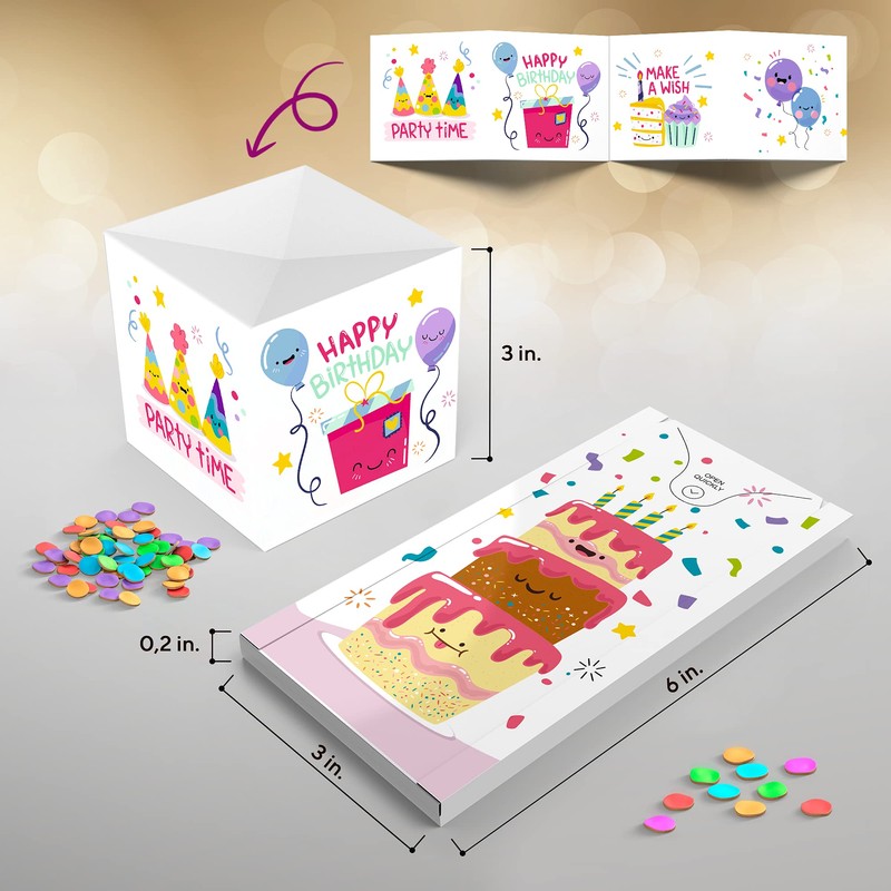 - UNPRECEDENTED SURPRISE: Once the envelope is opened, your chosen card will pop out, taking the form of a cube, and sprinkling the recipient with glitter and confetti!