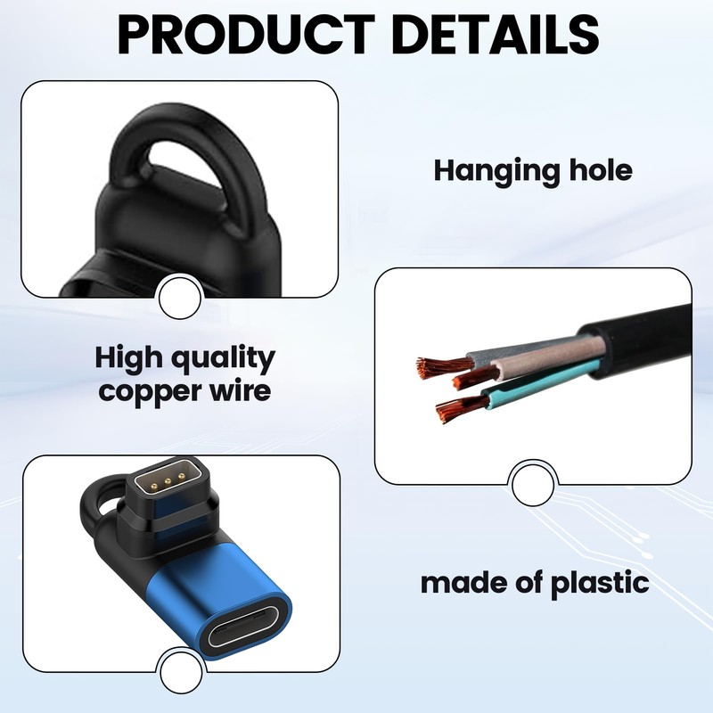 - 【USB-C Adapter Head】 Features a compact blue adapter head that allows you to convert your smartwatch charging connection easily and conveniently.