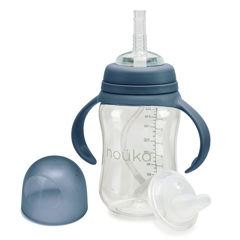 noüka nouka Tritan Plastic Transitional Sippy Cup with Weighted Straw | Leak Proof and Easy Grip | Removable Handles | Deep Ocean
