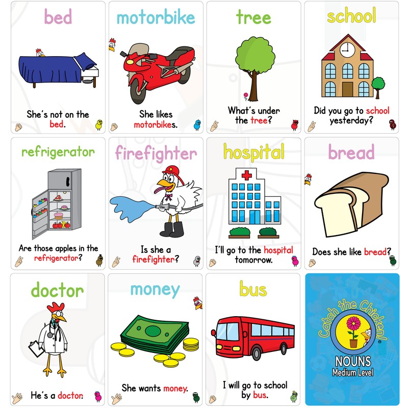 NOUNS English Card Game Catch The Chicken English Card Game Medium Level Children's English Noun Flashcard