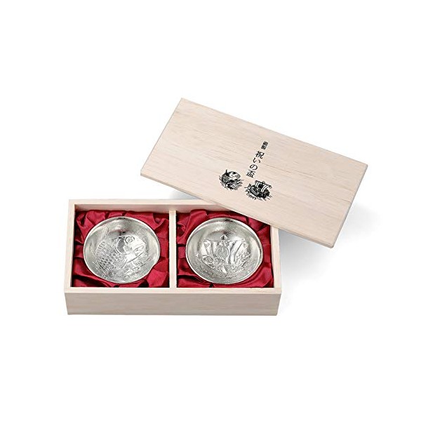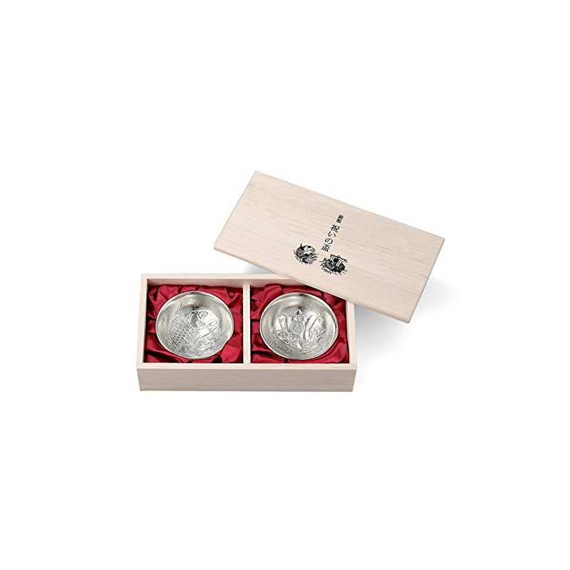 - A set of 100% tin glasses with a design of a bream and treasure vessel. It was a collaboration with Sajaido, a craft shop founded in 100 years in local Takaoka City. The paulownia box also includes a bream and treasure ship, so it is recommended as a gift for celebrations and favors. Since ancient times, tin has been said to be "water in a tin vessel will not rot, "It will release the taste of liquor and becomes mellow." It has been used in liquor and tea pots