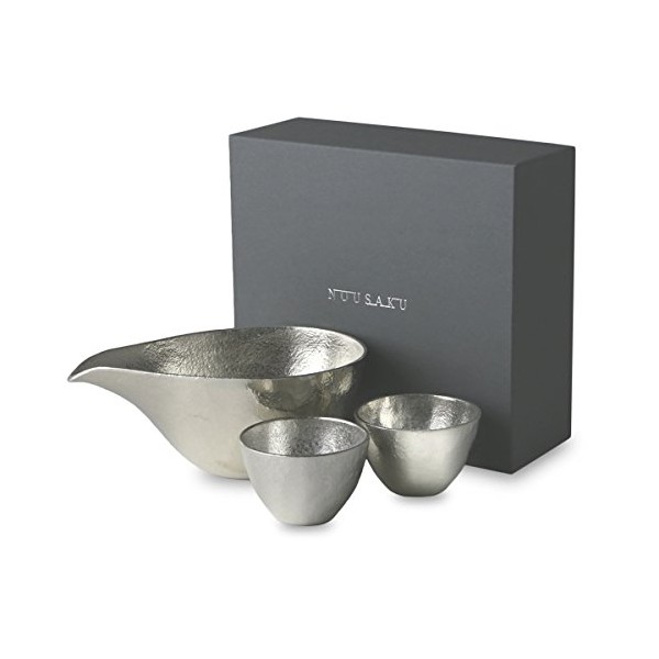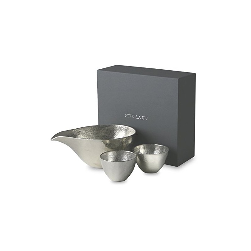 Nousaku Sake Set Guinomi, 2 Tin, Large Tin Katakuchi