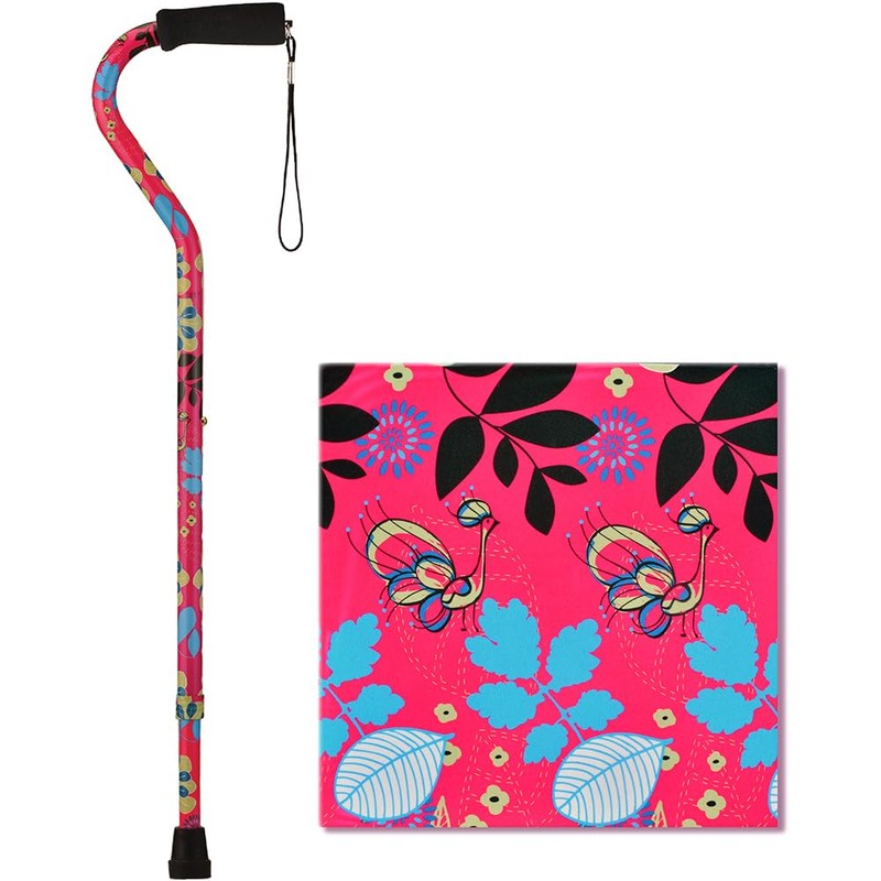 NOVA Designer Walking Cane with Offset Handle, Lightweight Adjustable Walking Stick with Carrying Strap, “Flower Power” Design