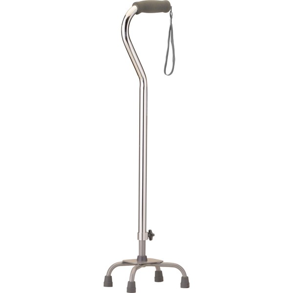 NOVA Heavy Duty Quad Cane with Small Base, 500 lb Weight Capacity Bariatric Walking Cane with Offset Handle, Adjustable Height Aluminum 4-Prong Cane, Right or Left Hand Use, Silver