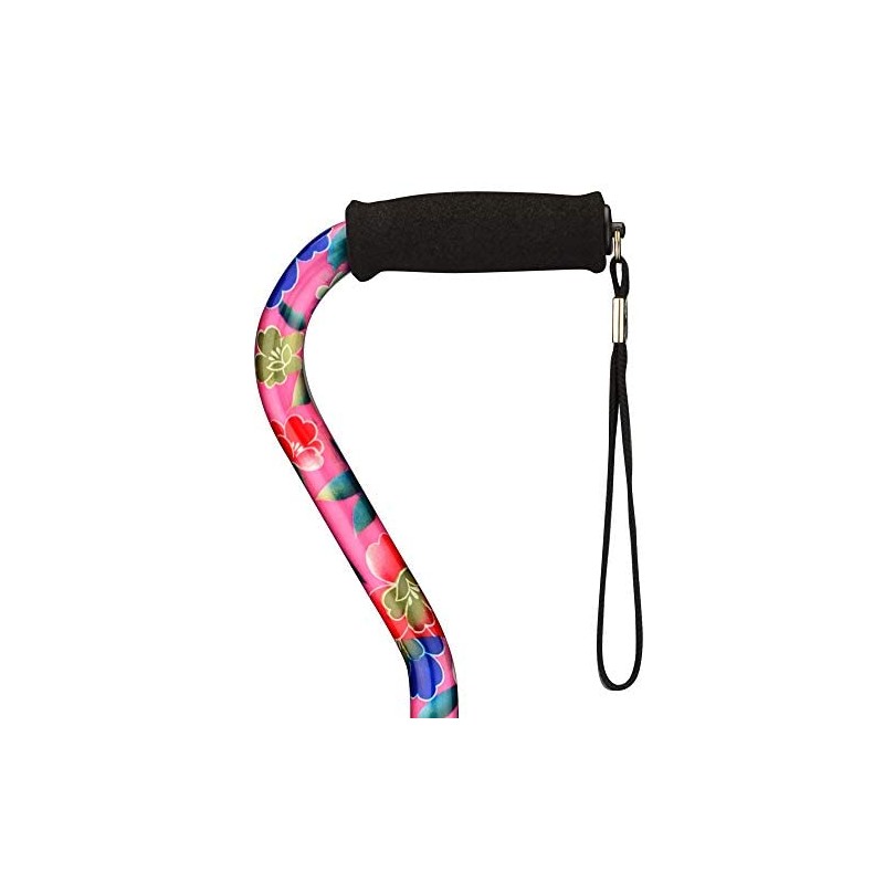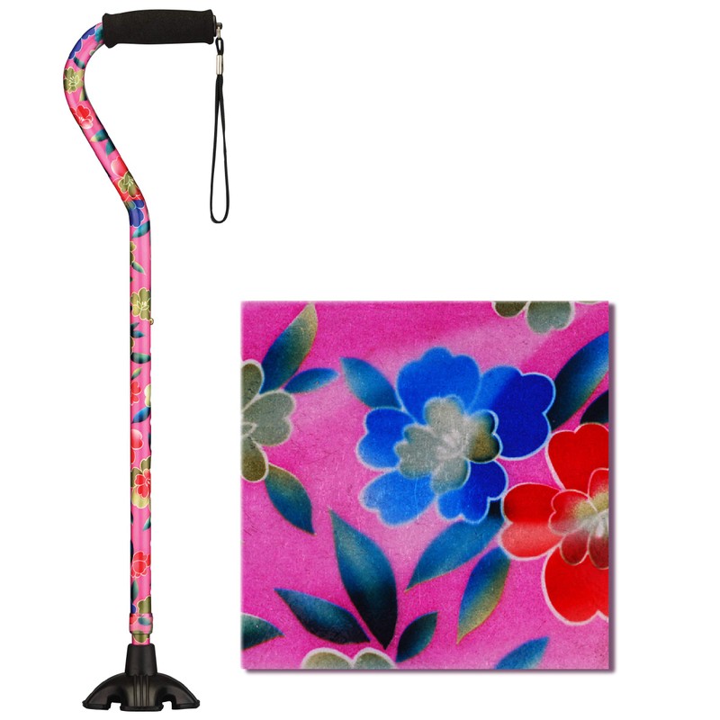 NOVA Medical Products Sugarcane, Walking Cane with Quad Tip and Carrying Strap, Stand Alone Cane, Pink Garden Design