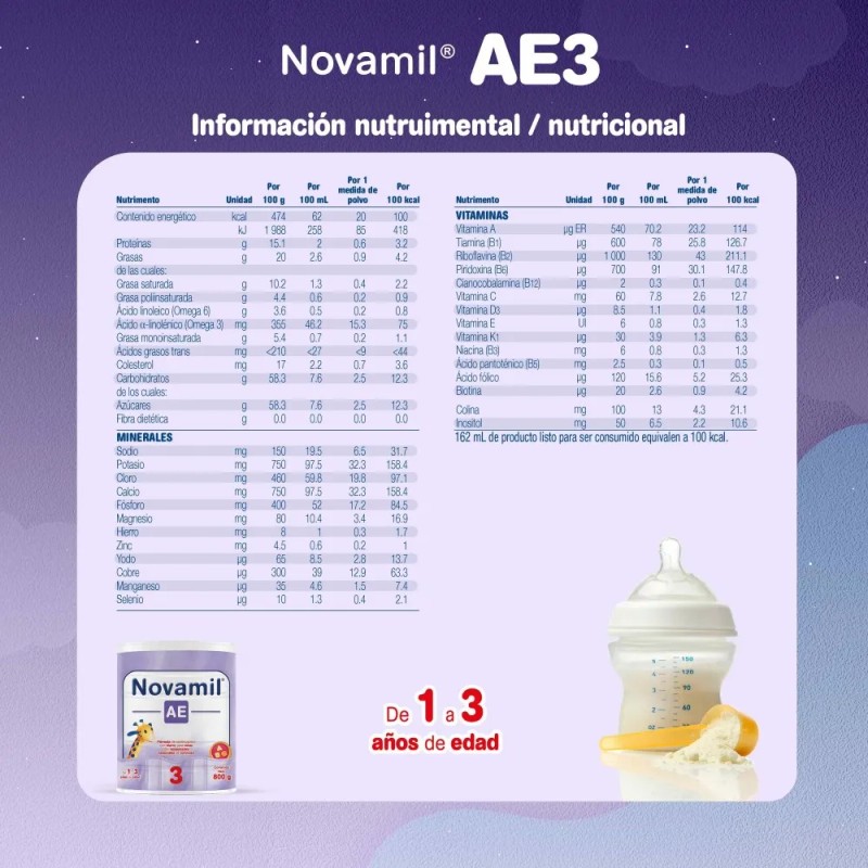 Novamil AE Fórmula Láctea Etapa 3 De 1 a 3 Años de Edad 800g