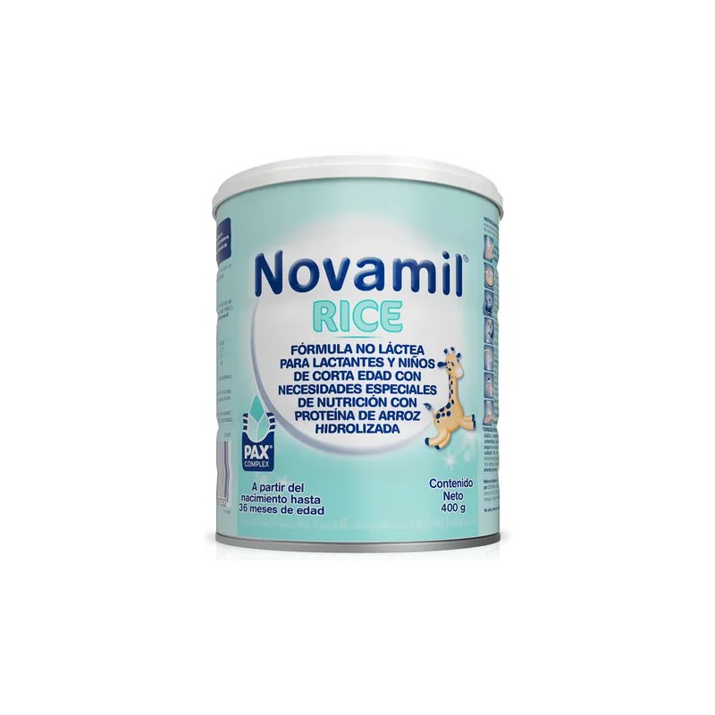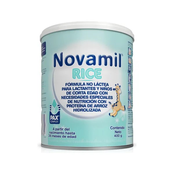 "NOVAMIL RICE Es una FÓRMULA Infantil NO LÁCTEA para lactantes con necesidades especiales de nutrición, a partir del nacimiento y hasta los 36 meses de edad con PROTEÍNA DE ARROZ HIDROLIZADA.