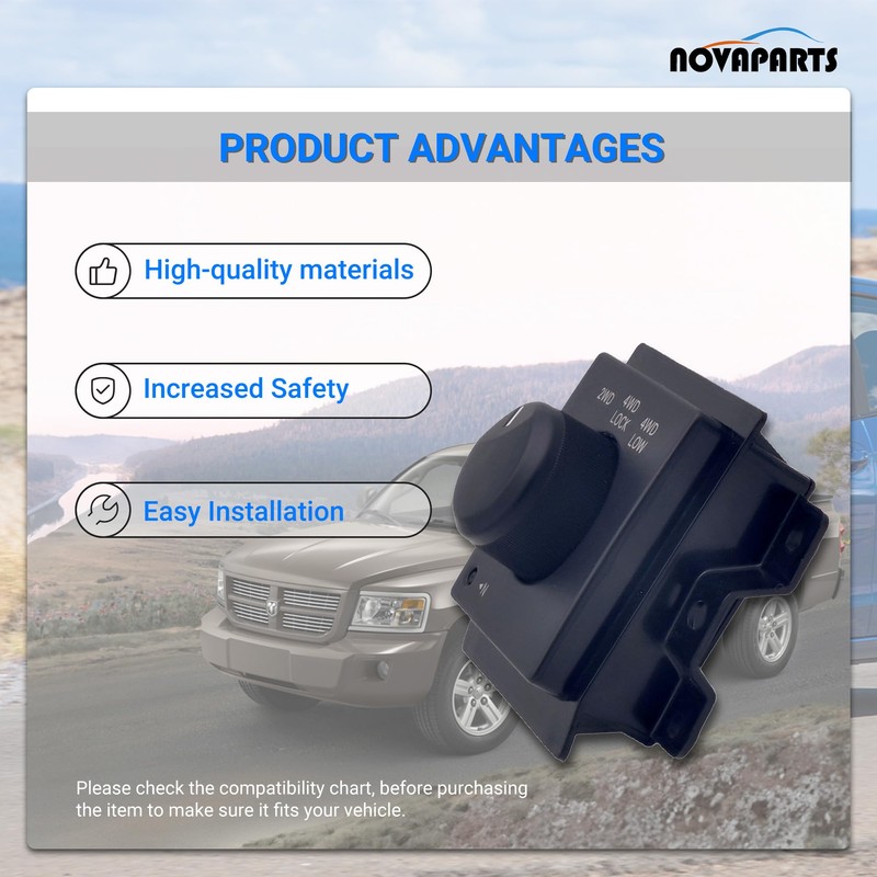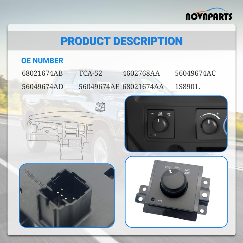 NOVAPARTS 4x4 Switch 4WD Four Wheel Drive Selector Switch Transfer Case Control Switch for 2005-2011 Dodge Dakota 2006-2008 Dodge Ram 1500 2006-2009 Dodge Ram 2500 Ram 3500 68021674AB TCA-52 4602768AA