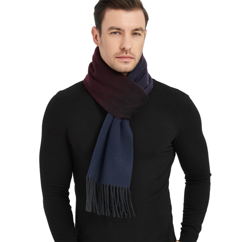 Novawo - Bufanda de lana para hombre, cálida y suave, larga bufanda de invierno, Navywine, Talla única