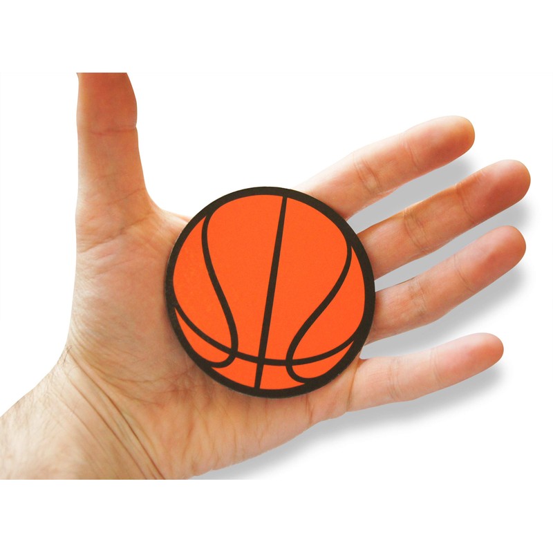 - 12-PIECE BASKETBALL MAGNETS measure roughly 3 inches by 3 inches with .019 mil of magnet construction. These make ideal giveaways, carnival prizes or party favors in gift goody bags as stuffers.